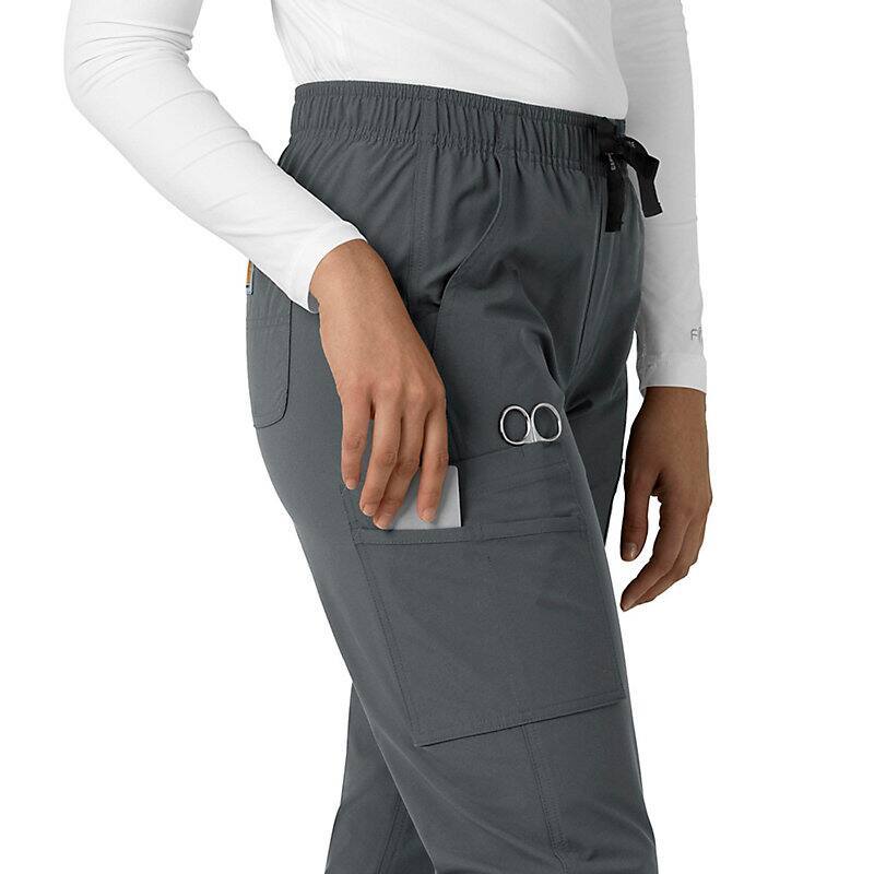 When the shifts are long and the pace is fast, these men's straight leg scrub pants deliver comfort and ease of movement to help you get the job done. Polyester fabric with built-in flex repels water and water-based stains. Multiple pockets, including a zip cargo pocket, give you space for your supplies.