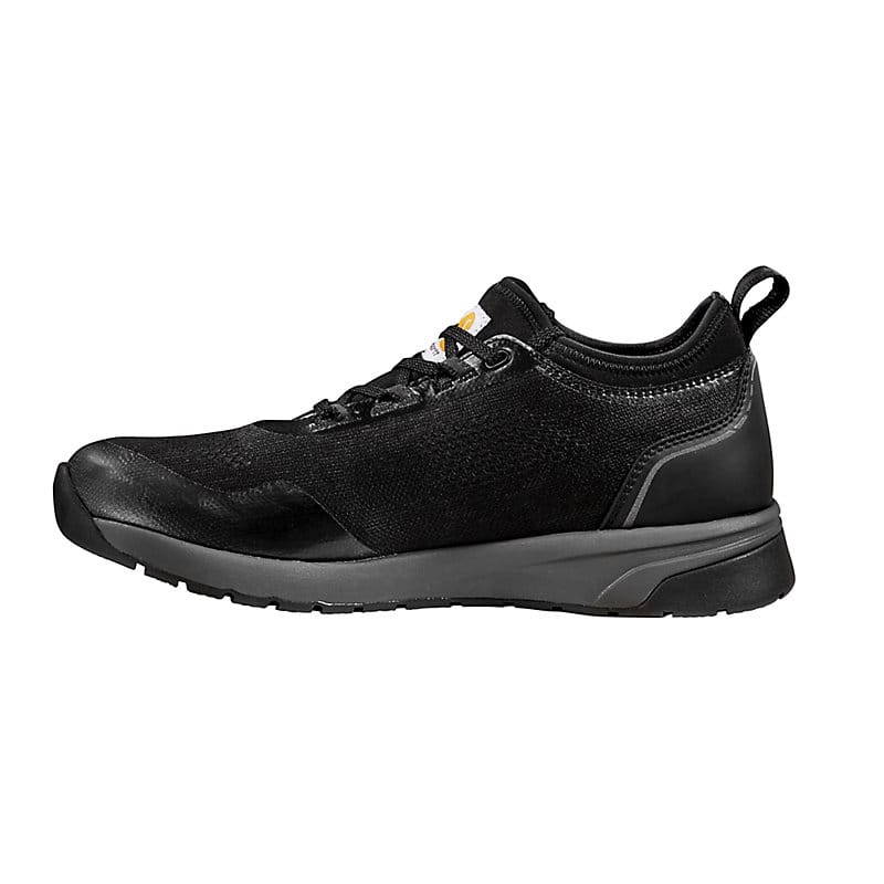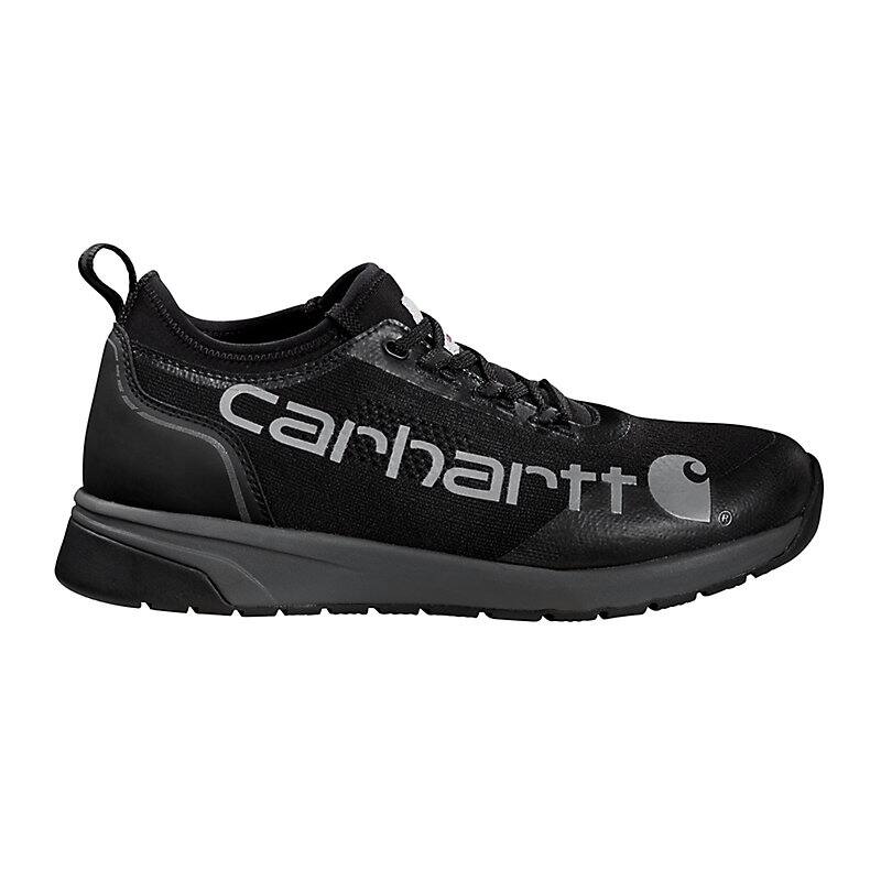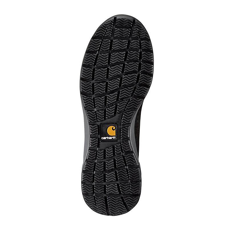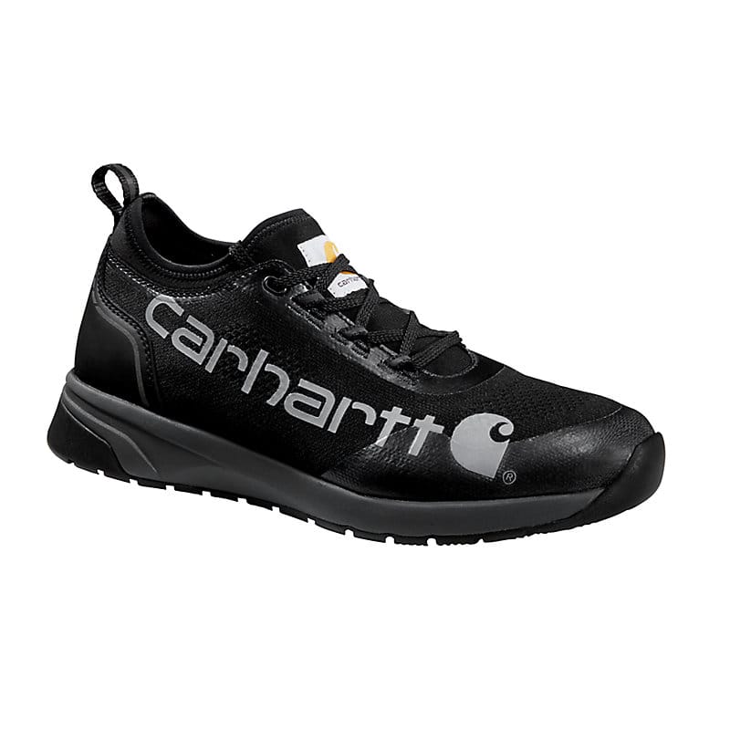 Lightweight and protective, these men's Carhartt work shoes are two attributes that are difficult to find in one shoe. Great for worksites that are metal-free, they come with a Nano composite safety toe meets ASTM F2413-18 EH standards. The low-bulk knit upper is reinforced at high-wear points and rides on a lightweight EVA midsole for cushioned comfort. The flexible Force outsole offers all-day comfort while providing slip resistance that meets ASTM F3445-21 SR standards.
