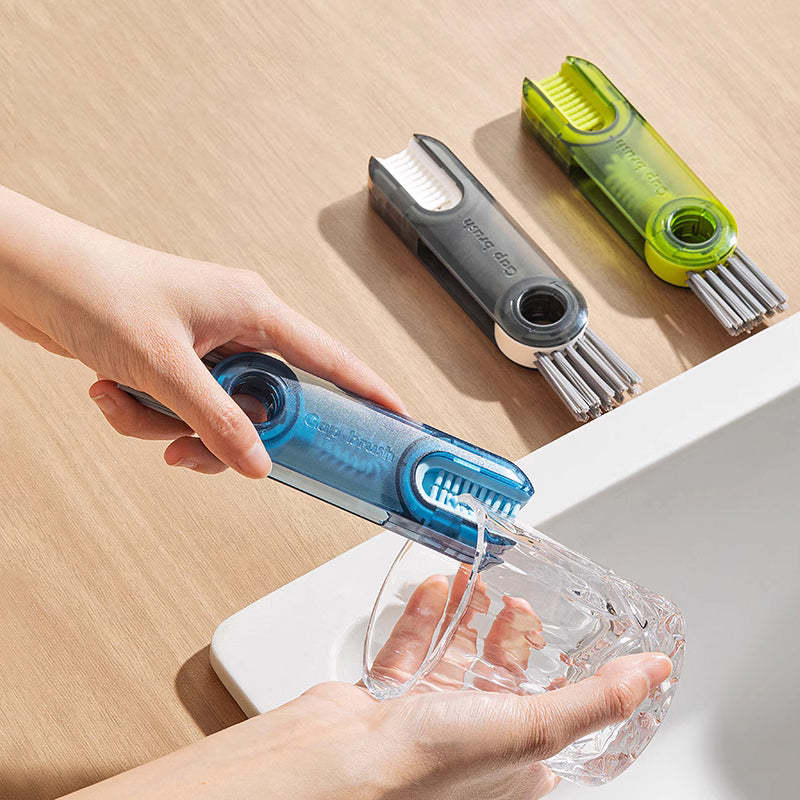 - 3-in-1 cleaning brush: U-shaped brush: matches the cup mouth to clean stubborn stains around the cup mouth. ?Gap Brush: Clean the narrow grooves on the inner wall of the cup cover. ? Corner brush with hard bristles: Remove the dirt in the corner groove of the container.