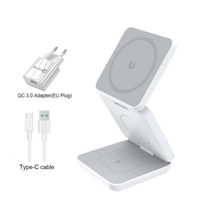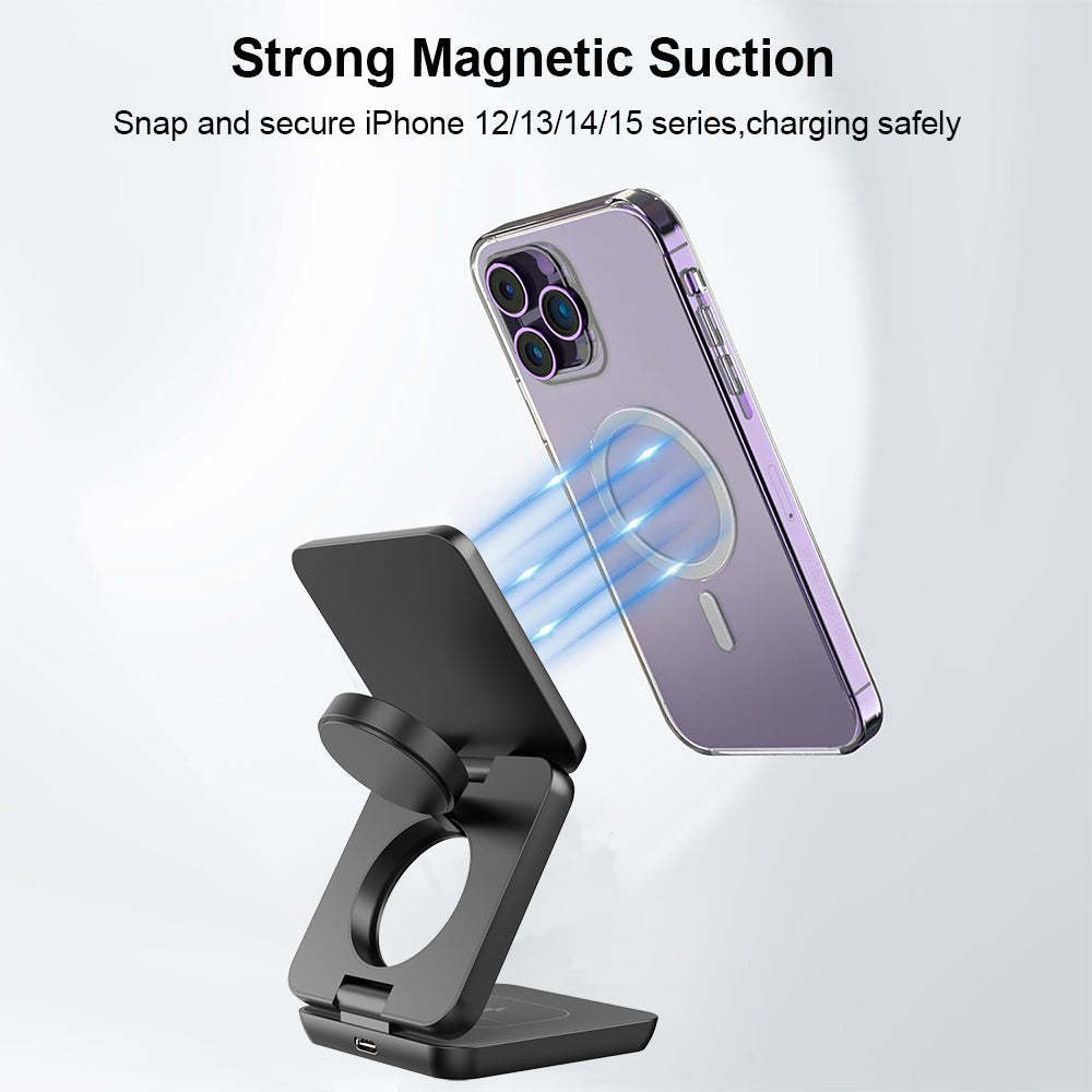 The 3-in-1 Foldable Magnetic Charging Station is a fast and efficient way to charge your devices. With QuickCharge technology, this charger can deliver up to 50% battery life in just 30 minutes. The metal design adds durability, while the Magsafe feature ensures a secure connection.