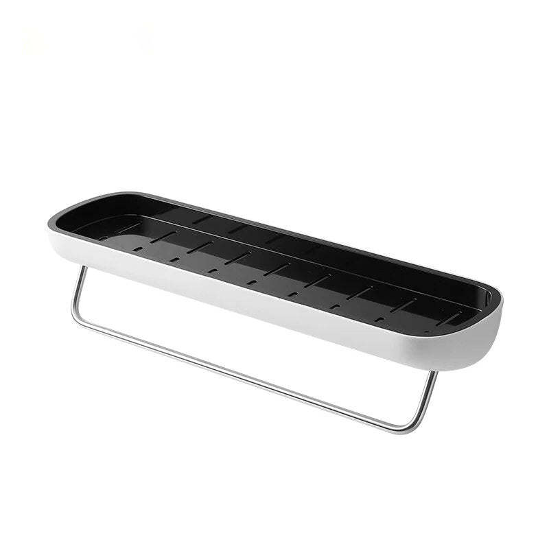 Useful Construction--Opened design with guardrail prevents items from falling. The base has drain holes prevents sewage from accumulating, and 4 small no-slip bumps which helps to hold items in place.